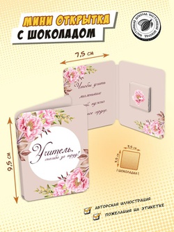 Мини открытка, ДОБРОЙ УЧИТЕЛЬНИЦЕ, молочный шоколад, 5 г, TM Chokocat