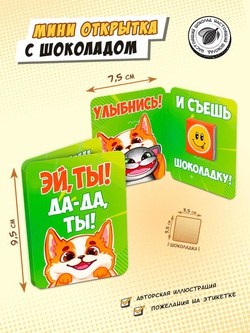 Мини открытка, УЛЫБНИСЬ. КОРГИ, молочный шоколад, 5 г, TM Chokocat