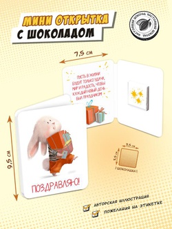 Мини открытка, ЗАЙЧИК. ПОЗДРАВЛЯЮ, молочный шоколад, 5 г, TM Chokocat