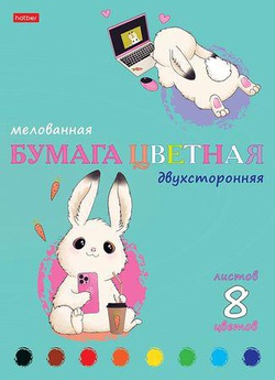 Набор цветной бумаги двусторонней мелованной А4 8л 8цв. "Умные зайки" (088634) 32284 Хатбер {Россия}