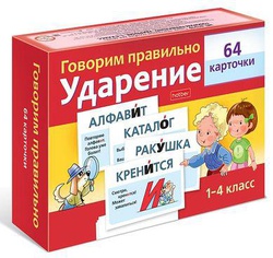 Развивающие карточки 80х120 мм 64 шт. "Говорим правильно. Ударение 1-4класс" для 1-4 класса (086525) 31319 Хатбер {Россия}