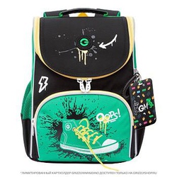 RB-357-1 Рюкзак школьный / черный - салатовый