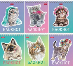 Блокнот на спирали А6 40л клетка "Котики бывают разными" (080474) Хатбер {Россия}