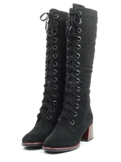 02-XR194-1 BLACK Сапоги женские (натуральная замша, натуральный мех (евромех))