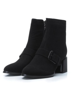 01-PCM347-2 BLACK Ботинки демисезонные женские (натуральная замша, байка)