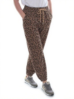 9001 LEOPARD/BROWN Брюки спортивные женские (95% хлопок, 5% спандекс)