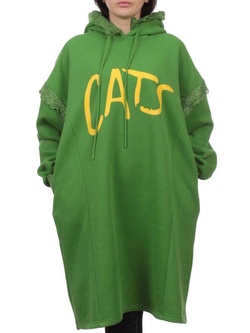 2247 GREEN Толстовка-платье женская (85% хлопок, 10% полиэстер, 5% спандекс)