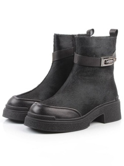 04-M3-H262 BLACK Ботильоны зимние женские (натуральная кожа, натуральный мех)