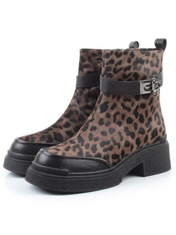 04-HSM705 BLACK/LEOPARD Ботинки зимние женские (натуральная кожа, натуральный мех)