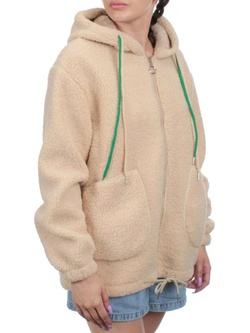 1003 BEIGE Куртка плюшевая демисезонная (65% хлопок, 35% полиэстер) оверсайз 44-54