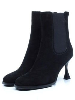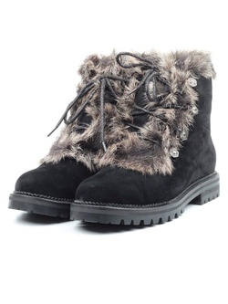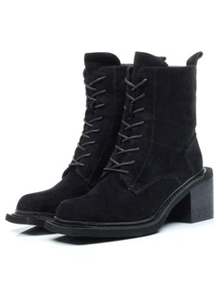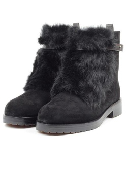 04-R164-1 BLACK Полусапоги женские (натуральная замша, натуральный мех)