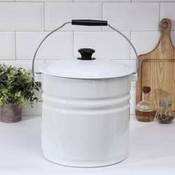 Ведро эмалированное с крышкой,12 л, цельнотянутое, цвет белый