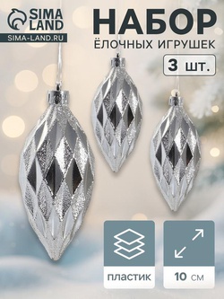 Ёлочные игрушки набор 3 шт. «Сосулька-рубик», 10 см, серебро