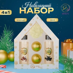 УЦЕНКА Новогодний подарочный набор косметики «Зимняя вьюга», с ароматом имбирного пряника и корицы. Зеленая серия