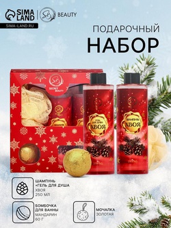 УЦЕНКА Новогодний подарочный набор косметики «В ожидании рождественского чуда» для душа и ванны, красная серия