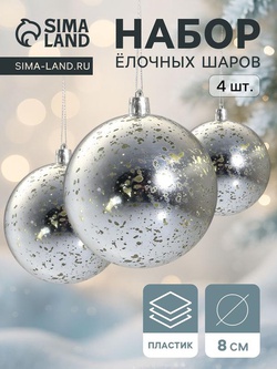 Ёлочные игрушки «Сфера блеска», шары новогодние, d=8 см, набор 2 шт., серебро, золото