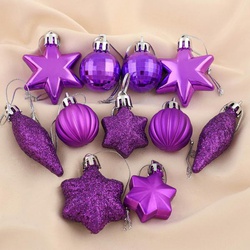 Ёлочные игрушки «Талла», шары новогодние, набор 12 шт. (4 шара, 2 сосульки, 6 звёзд), фиолетовые
