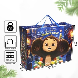 Пакет подарочный ламинированный «Волшебного Нового Года», 61×46×20 см, Чебурашка