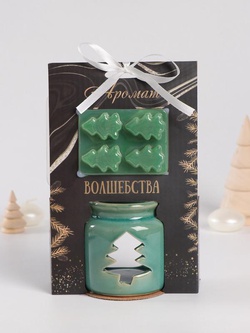 Набор: аромалампа для эфирных масел, мелтсы из воска ароматические «Ёлочка», зелёная, 7.5×7.5×8 см