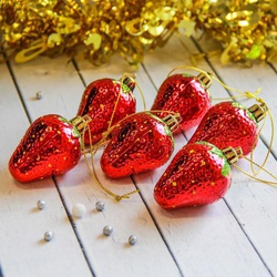 Ёлочное украшение 6 шт. «Клубника», 5×3.5 см, красный