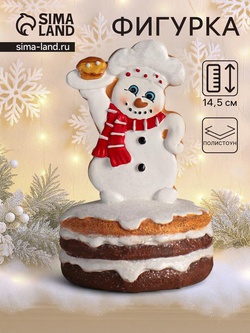 Фигурка полистоун «Снеговик пряничный в глазури, с кексиком», 9×9×14.5 см