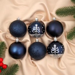 Ёлочные игрушки «Перелив», ёлочка, шары новогодние, набор d=6 см, 6 шт., синий