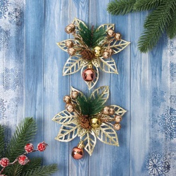 Ёлочные игрушки 2 шт. «Зимнее волшебство. Праздничные цветы» пластик, ягоды, 12 см, золото
