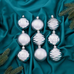 Ёлочные игрушки «Астрид полоски», шары новогодние, d=6 см, набор 9 шт., серебро