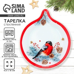 Тарелка новогодняя плоская «Снегирь», 15.4×18 см