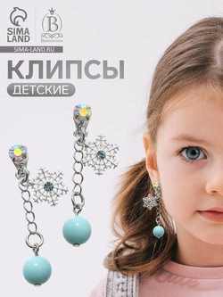 Серьги-клипсы детские «Выбражулька» снежинка на цепочке с кругом кристалл, голубо-радужные