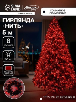 Гирлянда «Нить» 5 м, IP20, тёмная нить, 50 LED, 8 режимов, 220 В, свечение красное