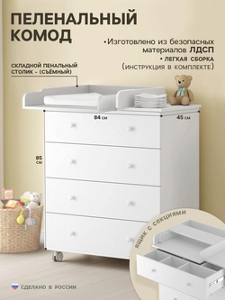 Комод пеленальный ИНКАНТО Nova 800/4 с органайзером, 85×84×45 см, ЛДСП, белый