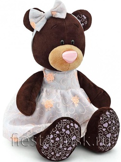 Зайка Ми в бархатном платье с клубничкой на ушке