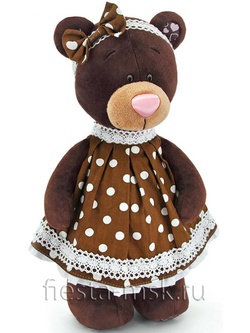 Мишка Milk в вязанной шапочке с сердечками 25 см