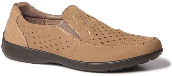 Бежевые лоферы RAY из мужской коллекции подойдут ценителям городской активной моды. Модель изготовлена из натурального нубука, верх дополнен удобными резинками по бокам. Мягкая подошва обеспечивает непревзойденный комфорт на протяжении всего дня. Лоферы хорошо вентилируются за счёт сквозной перфорации. Модель отличается увеличенной полнотой, учитывайте это при выборе обуви.