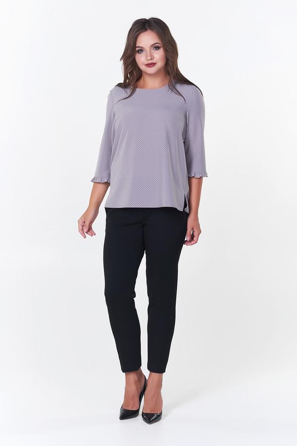 Очаровательная блузка прямого силуэта из легкой ткани с принтом "горох". Втачные рукава 3/4 дополнены оборкой. Круглый вырез горловины. Низ ровный, по бокам небольшие разрезы. Модель без застежки. Длина изделия: 46,48 р - 62см; 50,52 р - 63см; 54,56 р - 65 см Длина рукава: 41 см Рост фотомодели: 173 см Размер фотомодели: 48 Ткань: Ниагара