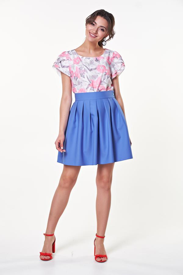 Очаровательная блуза прямого силуэта из легкого полотна с цветочным принтом. Короткие рукава-крылышки с защипами по окату добавят нежности Вашему образу. Округлая горловина на внутренней обтачке. Низ прямой, без разрезов. Универсальная блузка, которая будет хорошо сочетаться как с брюками, так и с юбкой. Блузка представлена с юбкой Мальвина №9 Длина изделия: 42,44,46,48,50 р - 60 см; 52,54 р - 66 см Рост фотомодели: 170 см Размер фотомодели: 42 Ткань: Ниагара