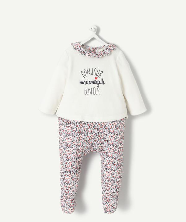 Sleep suit in a cotton blend, with a Peter Pan collar. Fastening with press-studs at the back and between the legs. Two in one effect. Cotton 75% Polyester 25% https://www.t-a-o.com/en/collection-newborn/newborn-girl/essentials-50-off-2nd-item-/flower-printed-sleep-suit--grisaille-93131.html