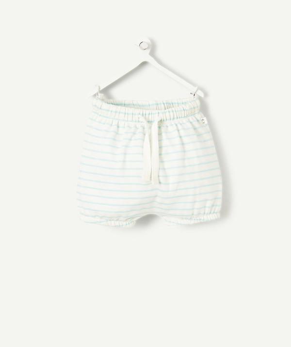Delightfully soft cotton bermuda shorts. The waist and bottoms of the legs are elasticated. Cotton 100% https://www.t-a-o.com/en/collection-newborn/newborn-boy/trousers-leggings-bloomer/bloomer-with-pastel-stripes-plume-91223.html