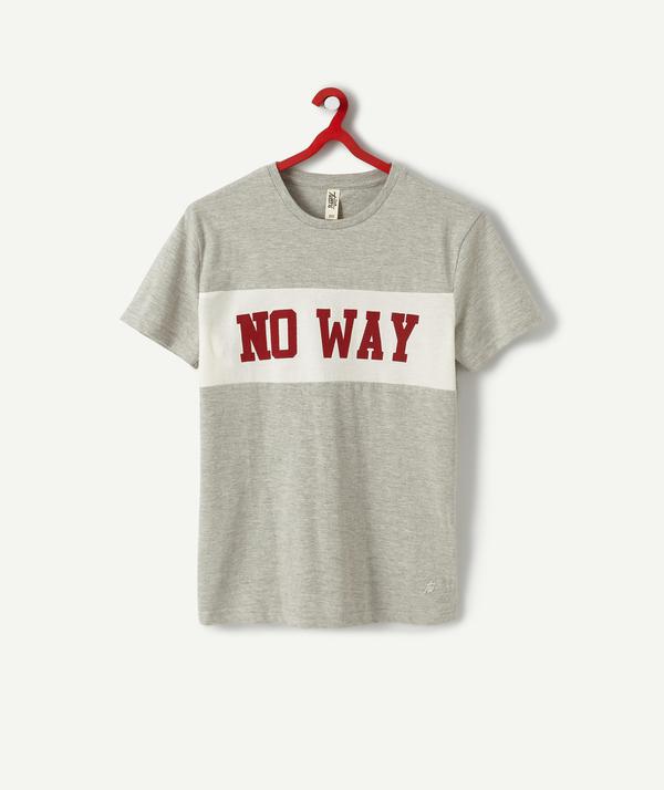 T-shirt in grey cotton, with short sleeves and a round neck. Insert on the chest and a printed message. Straight shape and soft material. Cotton 100% Ссылка