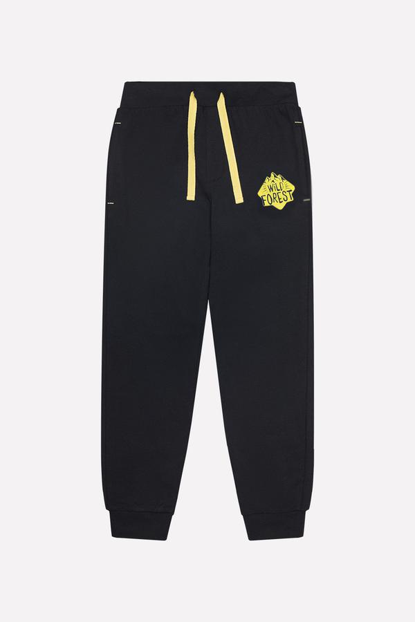 Описание: Брюки из трикотажа супрем с набивным рисунком. Пояс и манжеты из хлопка с эластаном. Внутри пояса резинка, утяжка на репсовой ленте. Боковые карманы с контрастными закрепками. Спереди принт.