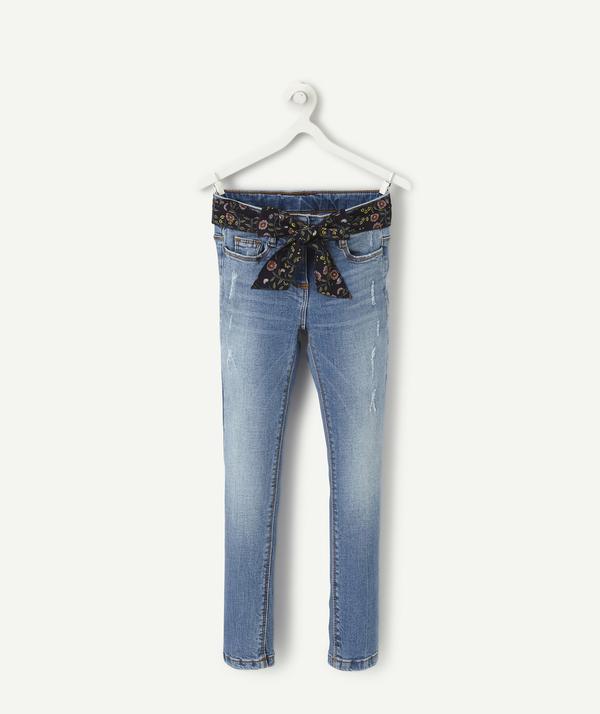 SKINNY JEANS WITH A FLOWER-PATTERNED BELT
