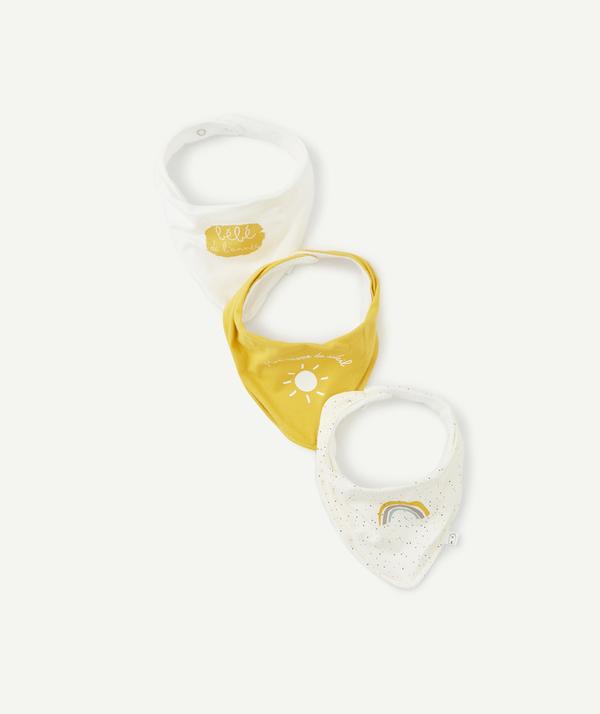 PACK OF THREE TRIANGULAR CREAM AND YELLOW BIBS