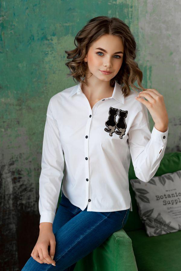 Артикул: 693 Аппликация кошки, ДР, Состав: хлопок/полиэфир/эластан; Цвет: белый Размеры: 152-76,158-80,164-84,164-88,170-92