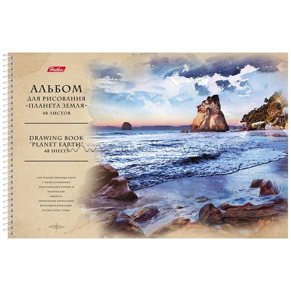 Альбом для рисования 48л А4ф перфорация на отрыв на спирали тиснение серия Планета Земля