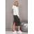 Юбка прилегающего силуэта, длиной «миди», с притачным поясом с резинкой. Переднее полотнище юбки без конструктивных элементов. Заднее полотнище юбки со средним швом в нижней части которого обработана шлица, внутри которой настрочена декоративная тесьма.