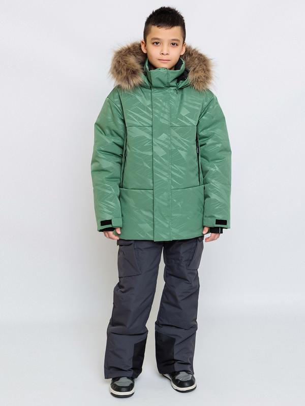 Описание Комплект для мальчика зимний Джаред из плотной ткани хаки с тисненым принтом и мембранным покрытием которое защищает от ветра и влаги Удобный рукав со спущенным плечом и внутренней трикотажной манжетой регулируется по ширине Капюшон с регулировкой по высоте и ширине съемная опушка на кнопках Ветрозащитная внешняя планка на магнитах и внутренняя планка от ветра и защита от защипа Много карманов боковой карман в подрезе со скрытой молнией внутренний карман карманы в боковом шве и накладные объемные карманы с клапанами на брюках Штанина широкая с внутренней снегозащитной манжетой и регулировкой по ширине скрытой молнией Все открытые срезы предусматривают защиту от поддува за счет утяжек светоотражающие элементы по принципу градусов видимости обеспечат безопасность в темное время суток Застежка пояса на кнопкукрючок Особенности Регулировка ширины рукавов Съемная опушка на капюшоне Водоотталкивающая пропитка DWR Внутренний карман Высокий тёплый ворот Регулировка ширины штанин скрытой молнией Характеристики Ткань верха мембрана Подклад PolyBrushed Утеплитель гм пк гм Температурный режим до С Производитель batik