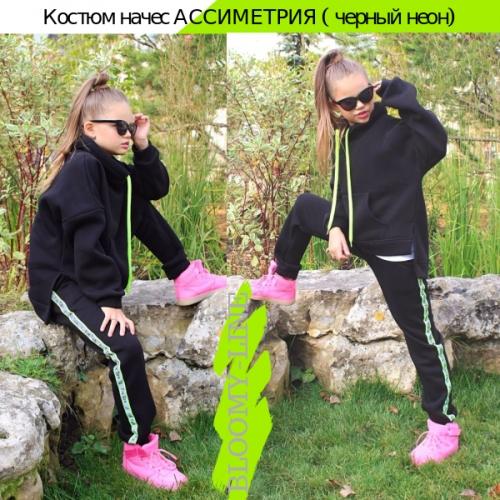 Костюм хлопковый с начесом ассиметрия "black neon"