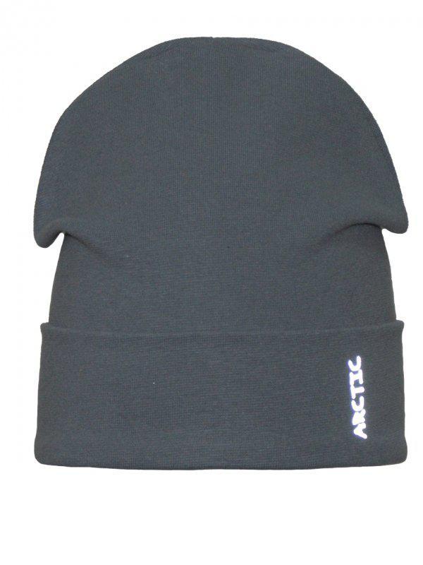 Шапка для мальчика из трикотажного полотна с отворотом, декорирована светоотражающей надписью.