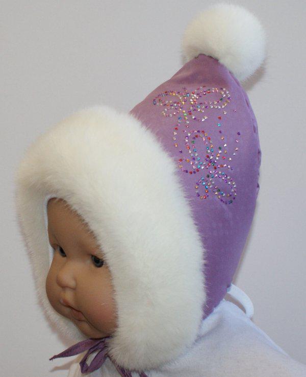 Шапка зимняя для девочки из плащевой ткани с отделкой из искусственного меха,с утеплителем из синтепона, на трикотажной подкладке из хлопка (кулирка)